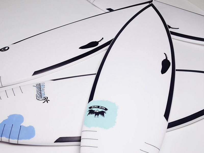 Combining the elements of Innegra S fibre (the white lines on your board) with Chilli's double twisted weave fibreglass, we strategically glass 14 strands of Innegra running parallel up your board. These fibres provide a controlled strength and flex allowing the board to be stronger and perform better without becoming too stiff.